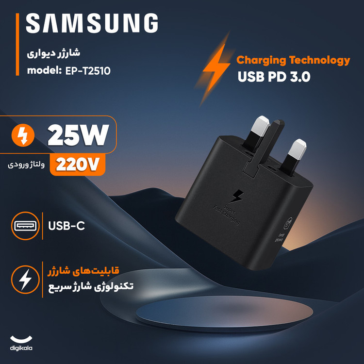 شارژر دیواری 25 وات سامسونگ مدل T2510 اصلی با ضمانت