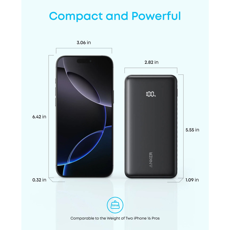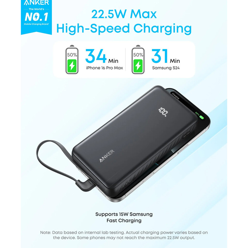 پاوربانک 22.5 وات انکر مدل Zolo A110E ظرفیت 20000 میلی‌آمپرساعت