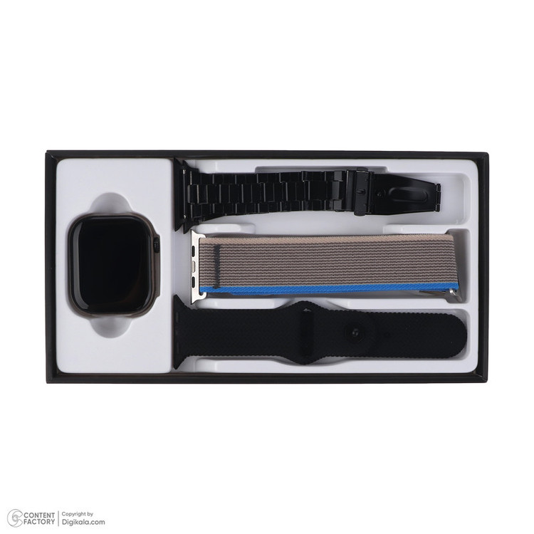 شارژر مگنتی / مجهز به سه نوع بند / دارای یک بند فلزی با قفلبند کلیپسی / مجهز به یک بند برزنتی با قفلبند چسبی