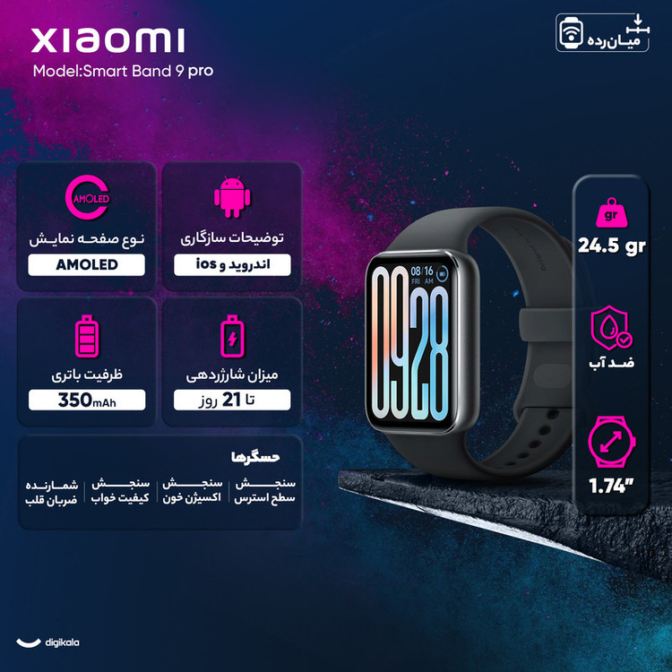 سنسورهای ورزشی و سلامتی : شمارنده ضربان قلب , سنجش اکسیژن خون , سنجش کیفیت خواب , سنجش سطح استرس