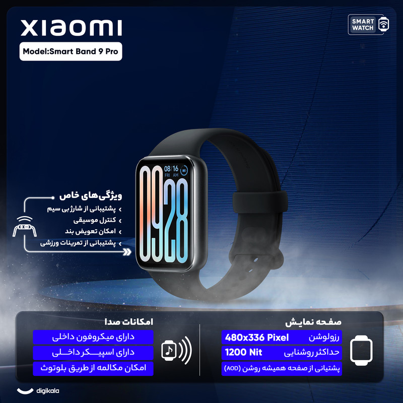 قابلیتهای ساعت هوشمند : کنترل موسیقی (Music Player) , قابلیت تغییر طرح ساعت یا تم , صفحه همیشه روشن (Always-on Display)